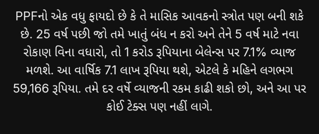 ✔️તે લાંબા ગાળાની રોકાણ યોજના છે પરિપકતાનો સમયગાળો 15 વર્ષ છે જે નોંધપાત્ર પ્રમાણમાં કોર્પસ એકઠા કરવાની મંજૂરી આપે છે ઘણા કર્મચારીઓ માટે સારી નિવૃત્તિ આયોજન યોજના તરીકે સેવા આપે છે