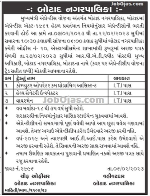 New Recruitment Advertisement 2023 for ITI Pass by Botad Municipality.