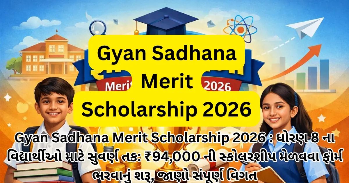 Gyan Sadhana Merit Scholarship 2026 : ધોરણ 8 ના વિદ્યાર્થીઓ માટે સુવર્ણ તક: ₹94,000 ની સ્કોલરશીપ મેળવવા ફોર્મ ભરવાનું શરૂ, જાણો સંપૂર્ણ વિગત