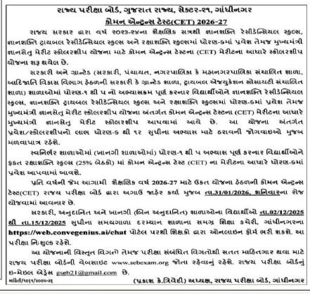 CET મેરીટ લિસ્ટ 2025/26 જોવા માટે અહીં ક્લિક કરો.
