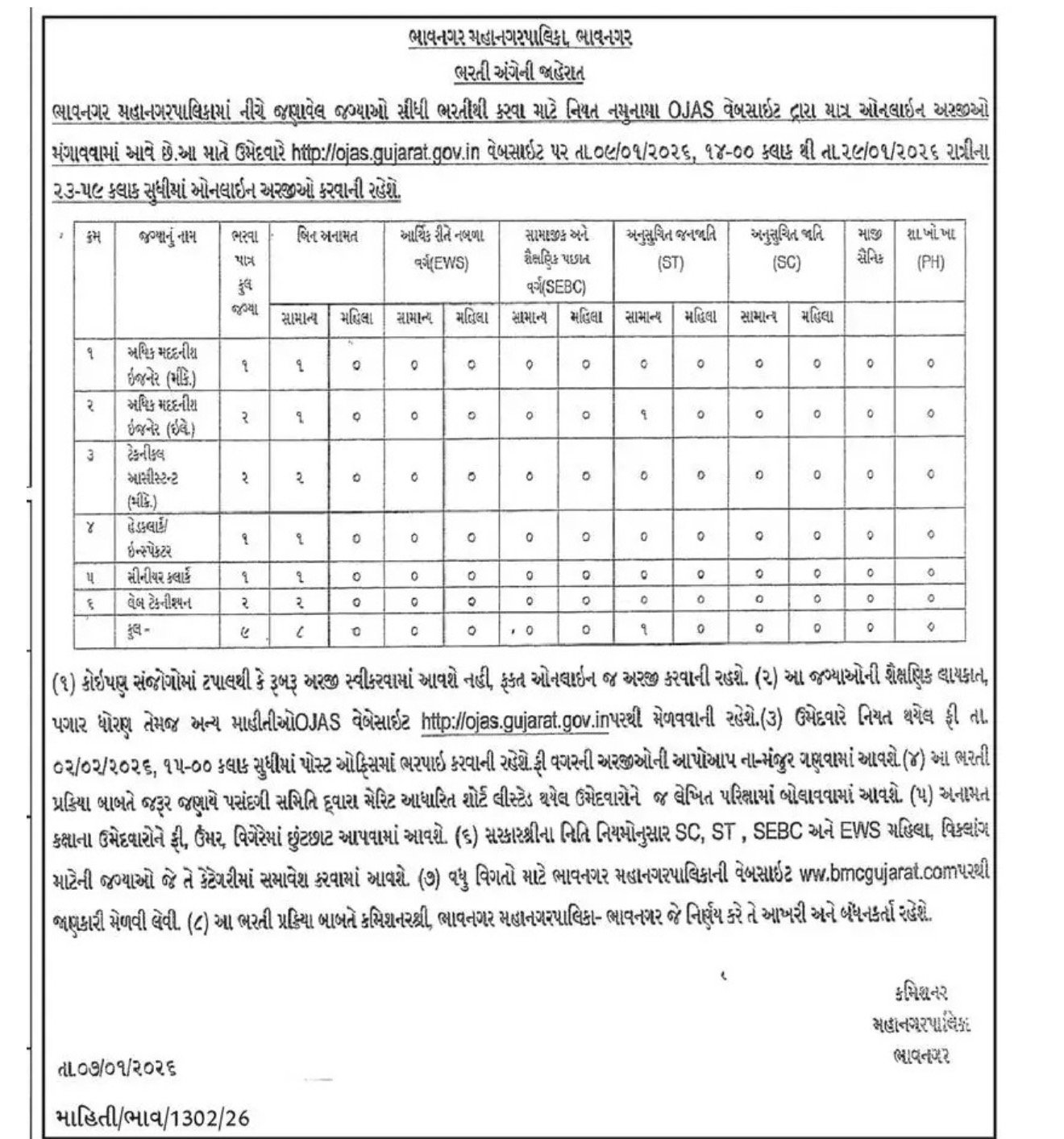 - સત્તાવાર વેબસાઈટ: ઉમેદવારો ojas.gujarat.gov.in અથવા ભાવનગર મહાનગરપાલિકાની સત્તાવાર વેબસાઈટ પર જઈને ઓનલાઈન ફોર્મ ભરી શકે છે.